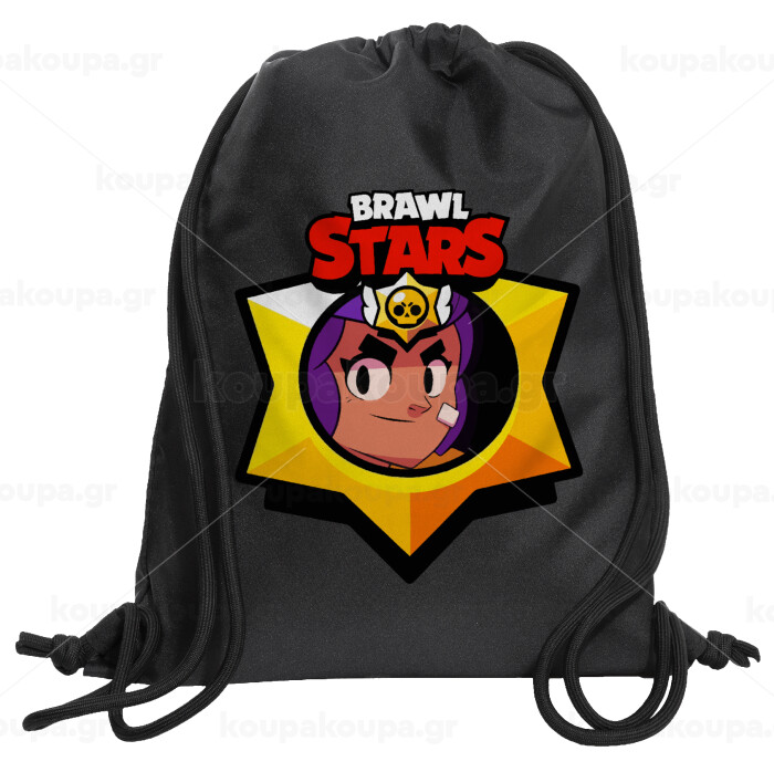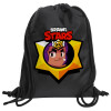 Brawl Stars Shelly, Backpack pouch GYMBAG Black, with pocket (40x48cm) & thick cords