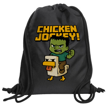 Chicken Jockey, Backpack pouch GYMBAG Black, with pocket (40x48cm) & thick cords