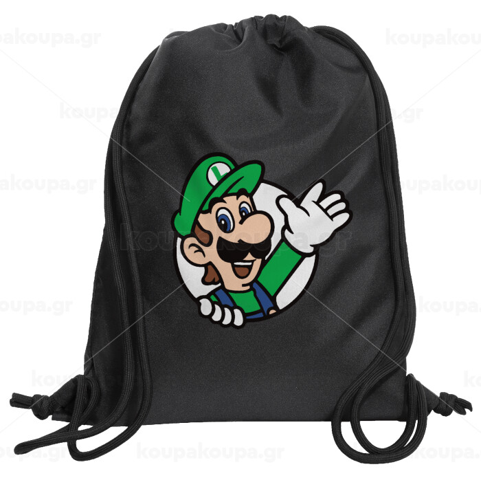 Super mario Luigi win, Backpack pouch GYMBAG Black, with pocket (40x48cm) & thick cords