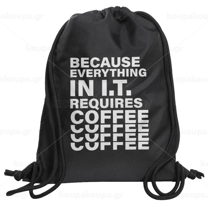 Because everything in I.T. requires coffee, Backpack pouch GYMBAG Black, with pocket (40x48cm) & thick cords