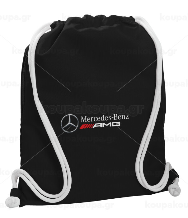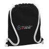 AMG Mercedes, Backpack pouch GYMBAG Black, with pocket (40x48cm) & thick white cords