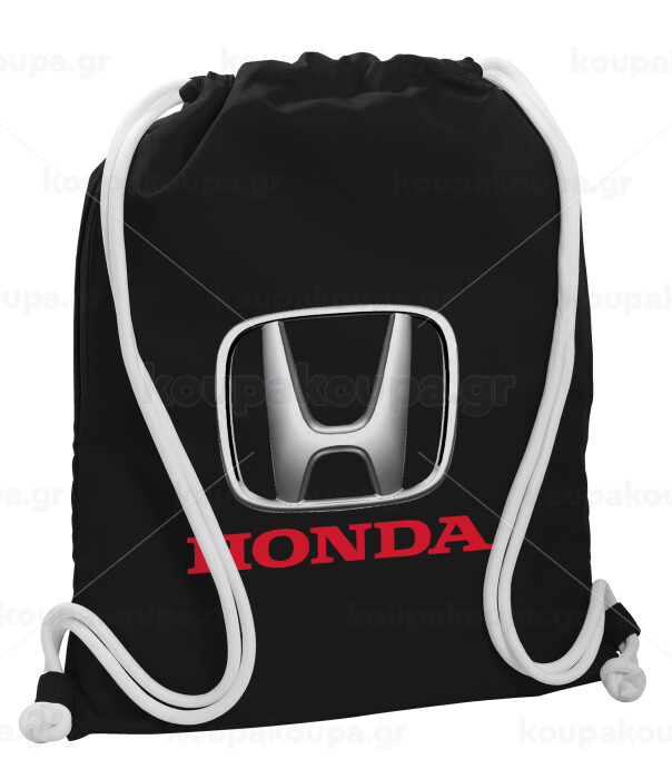 HONDA, Backpack pouch GYMBAG Black, with pocket (40x48cm) & thick white cords