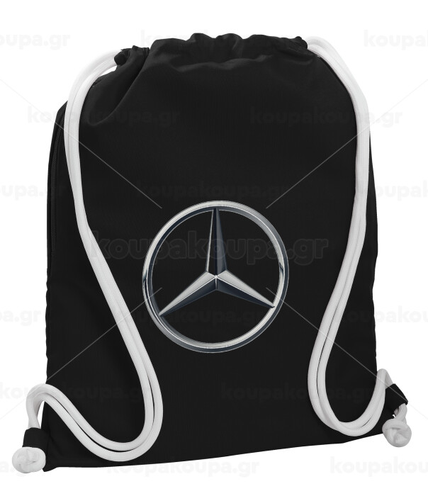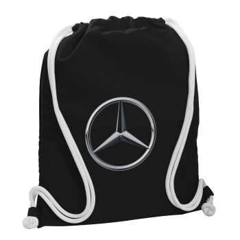 mercedes, Backpack pouch GYMBAG Black, with pocket (40x48cm) & thick white cords
