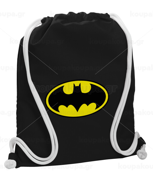 Batman, Backpack pouch GYMBAG Black, with pocket (40x48cm) & thick white cords