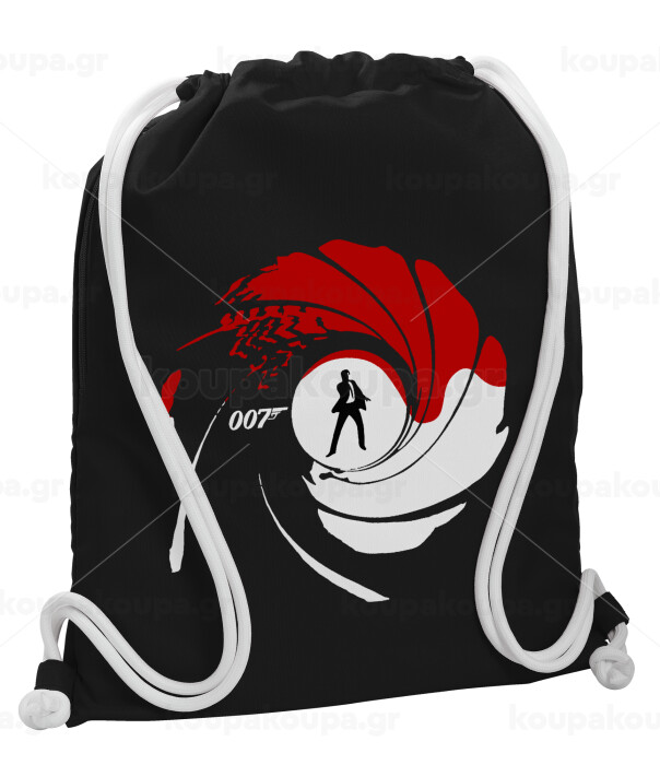 James Bond 007, Backpack pouch GYMBAG Black, with pocket (40x48cm) & thick white cords