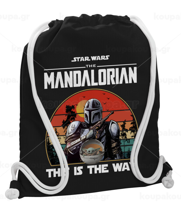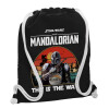 Mandalorian, Backpack pouch GYMBAG Black, with pocket (40x48cm) & thick white cords