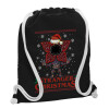 Stranger Things Christmas, Backpack pouch GYMBAG Black, with pocket (40x48cm) & thick white cords