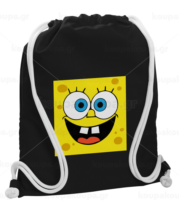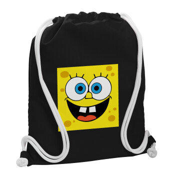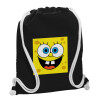 BOB, Backpack pouch GYMBAG Black, with pocket (40x48cm) & thick white cords