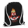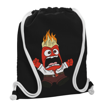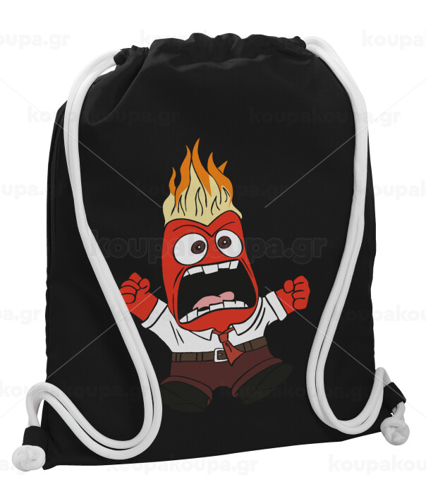 Inside Out Angry, Backpack pouch GYMBAG Black, with pocket (40x48cm) & thick white cords