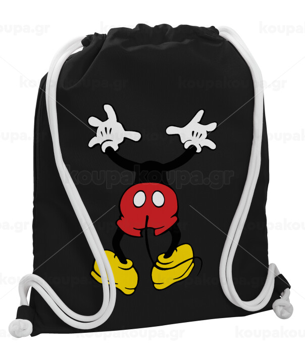 Mickey hide..., Backpack pouch GYMBAG Black, with pocket (40x48cm) & thick white cords