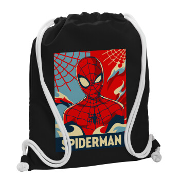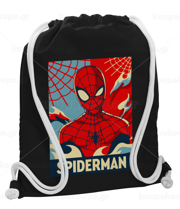 Spiderman kid, Backpack pouch GYMBAG Black, with pocket (40x48cm) & thick white cords