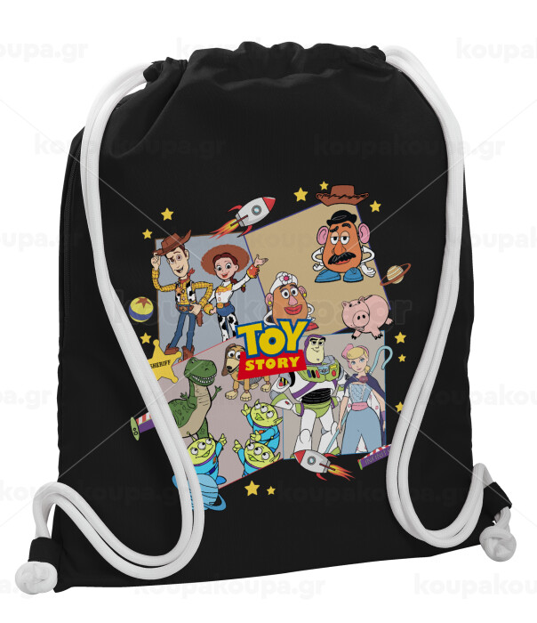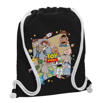 toystory characters, Backpack pouch GYMBAG Black, with pocket (40x48cm) & thick white cords