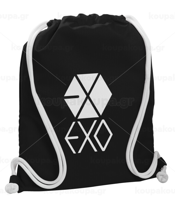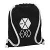 EXO Band korea, Backpack pouch GYMBAG Black, with pocket (40x48cm) & thick white cords