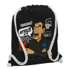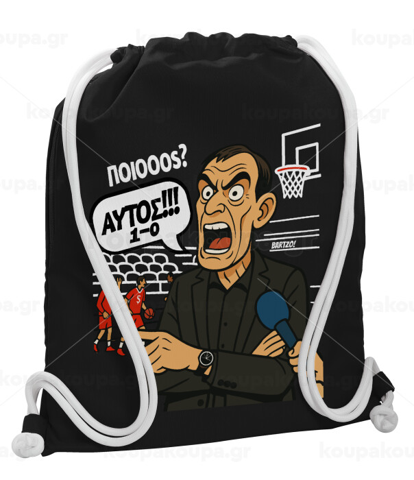 Μπαρτζό, Ποιος? Αυτός!!! 1-0, Backpack pouch GYMBAG Black, with pocket (40x48cm) & thick white cords