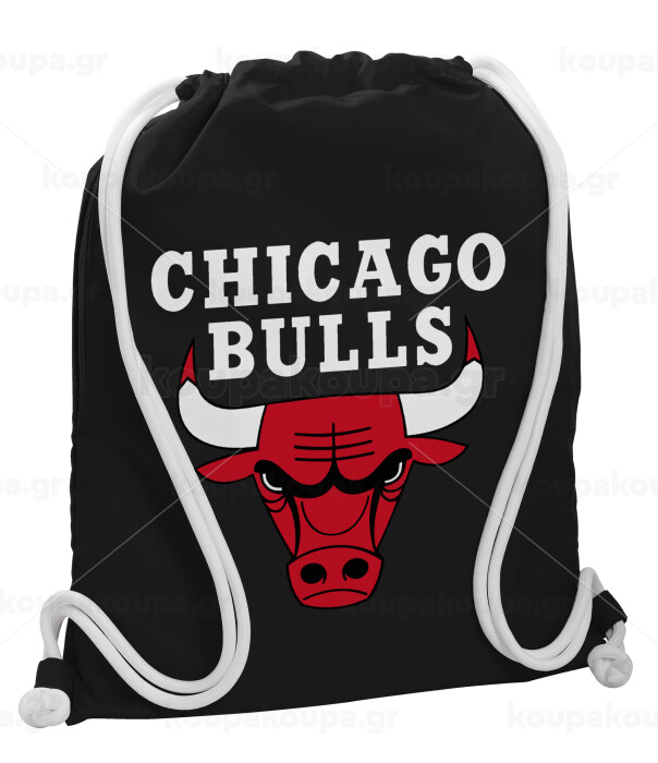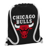Chicago Bulls, Backpack pouch GYMBAG Black, with pocket (40x48cm) & thick white cords