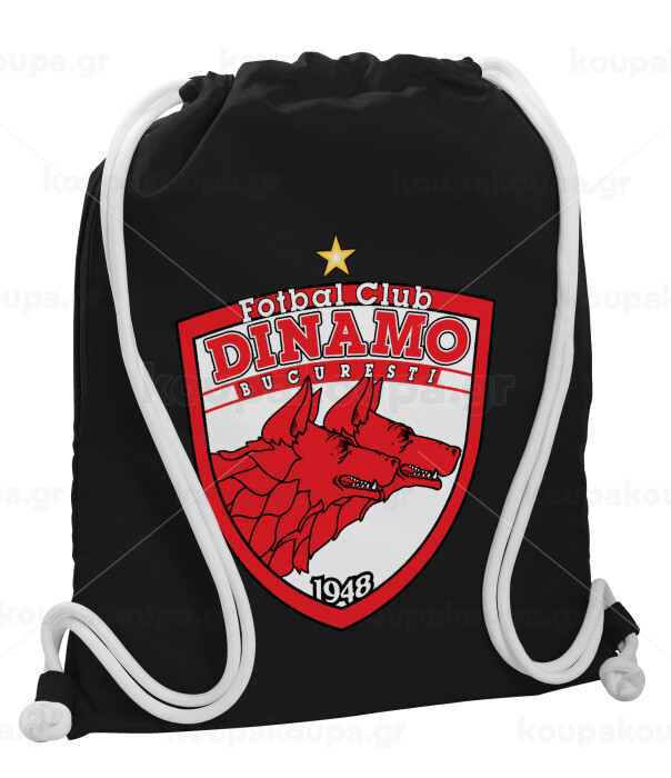 FC Dinamo Bucuresti, Backpack pouch GYMBAG Black, with pocket (40x48cm) & thick white cords