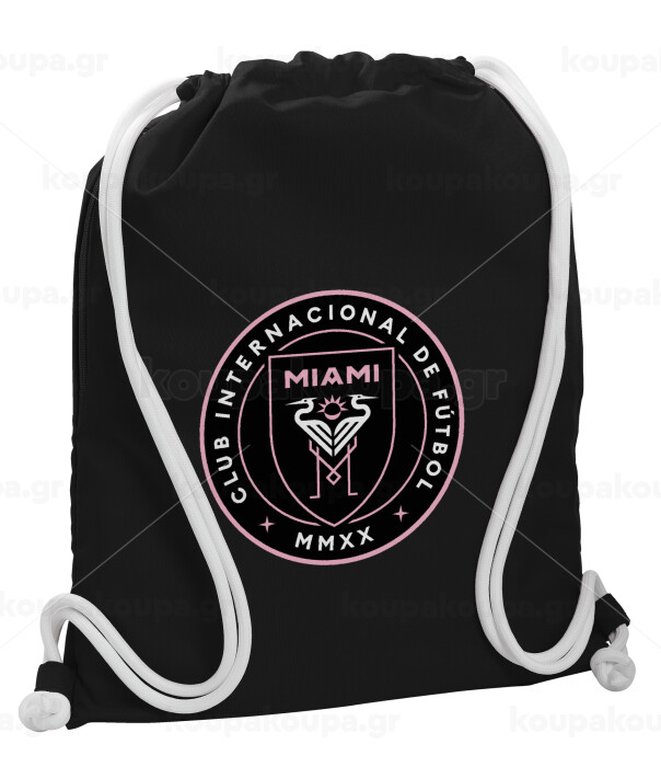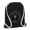 Inter Miami CF, Backpack pouch GYMBAG Black, with pocket (40x48cm) & thick white cords