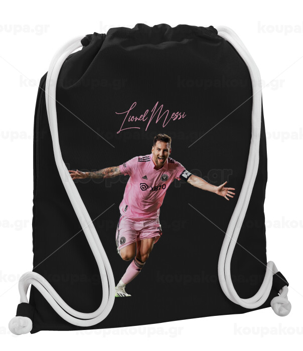 Lionel Messi inter miami jersey, Backpack pouch GYMBAG Black, with pocket (40x48cm) & thick white cords