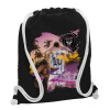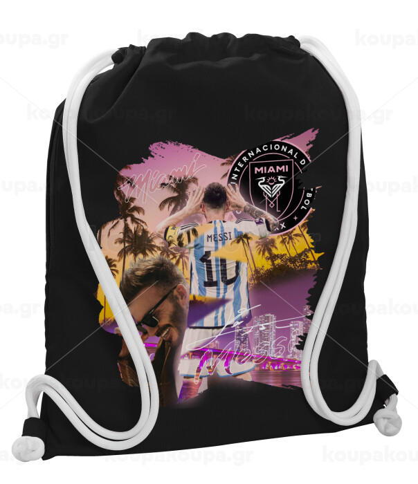 Lionel Messi Miami, Backpack pouch GYMBAG Black, with pocket (40x48cm) & thick white cords