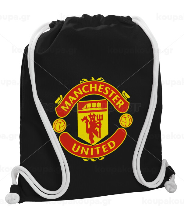 Manchester United F.C., Backpack pouch GYMBAG Black, with pocket (40x48cm) & thick white cords