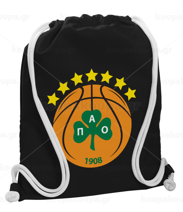 PAO BC, Backpack pouch GYMBAG Black, with pocket (40x48cm) & thick white cords