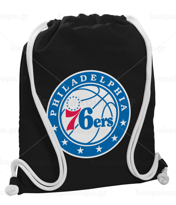 Philadelphia 76ers, Backpack pouch GYMBAG Black, with pocket (40x48cm) & thick white cords