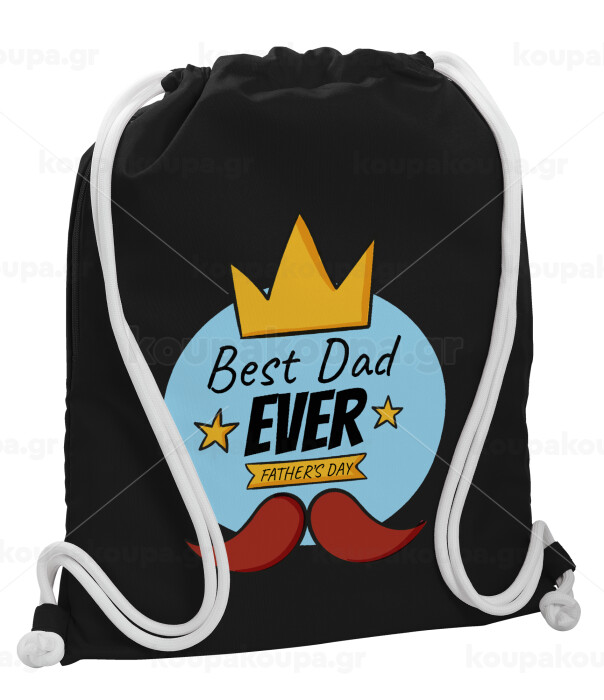 King, Best dad ever, Backpack pouch GYMBAG Black, with pocket (40x48cm) & thick white cords