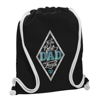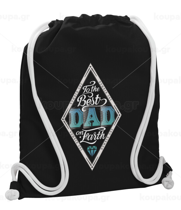 To the best DAD on earth, Backpack pouch GYMBAG Black, with pocket (40x48cm) & thick white cords