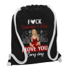 I love You Everyday , Backpack pouch GYMBAG Black, with pocket (40x48cm) & thick white cords