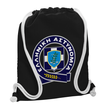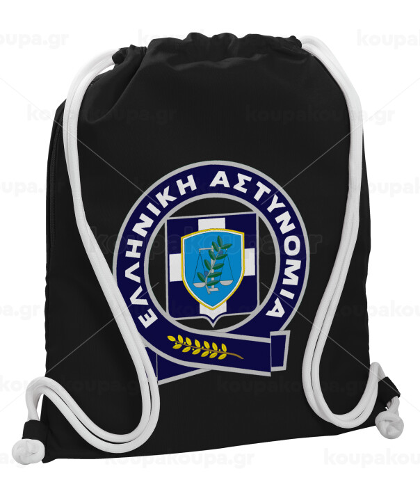 Ελληνική Αστυνομία, Backpack pouch GYMBAG Black, with pocket (40x48cm) & thick white cords