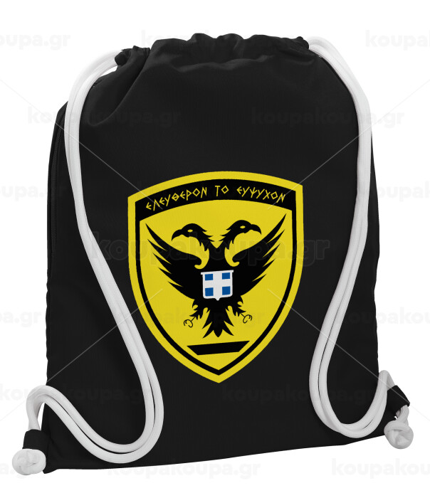 Ελληνικός Στρατός, Backpack pouch GYMBAG Black, with pocket (40x48cm) & thick white cords