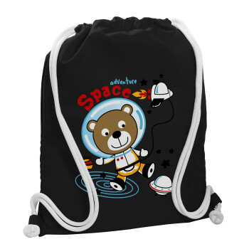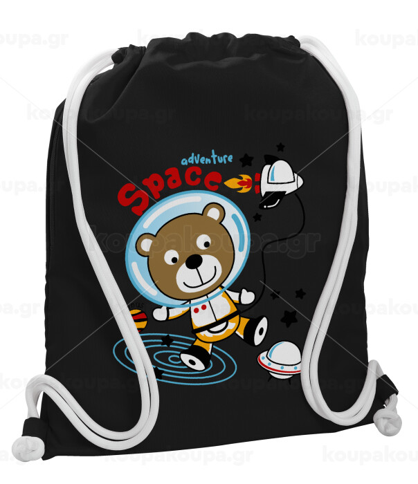 Kids Space, Backpack pouch GYMBAG Black, with pocket (40x48cm) & thick white cords