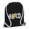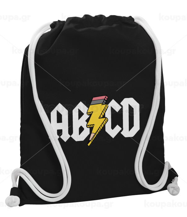 ABCD, Backpack pouch GYMBAG Black, with pocket (40x48cm) & thick white cords