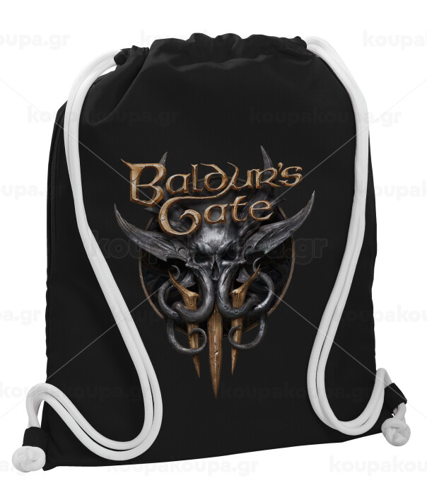 Baldur's Gate, Backpack pouch GYMBAG Black, with pocket (40x48cm) & thick white cords