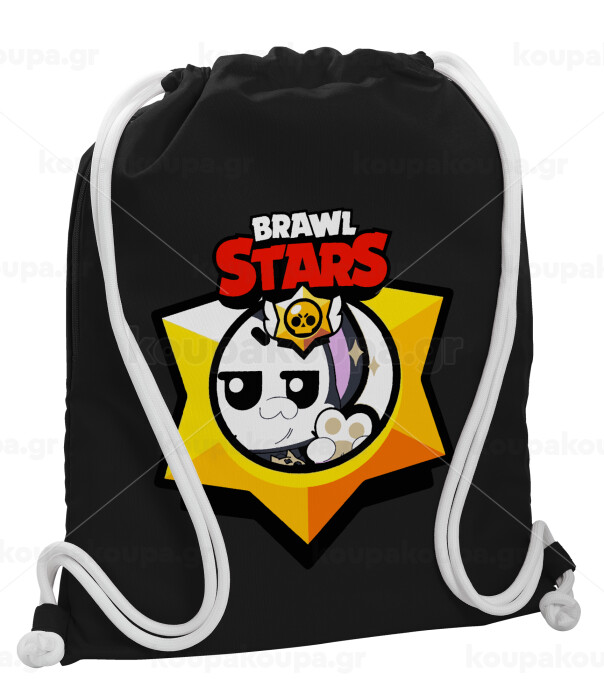 Brawl Stars Kit, Backpack pouch GYMBAG Black, with pocket (40x48cm) & thick white cords