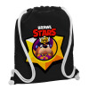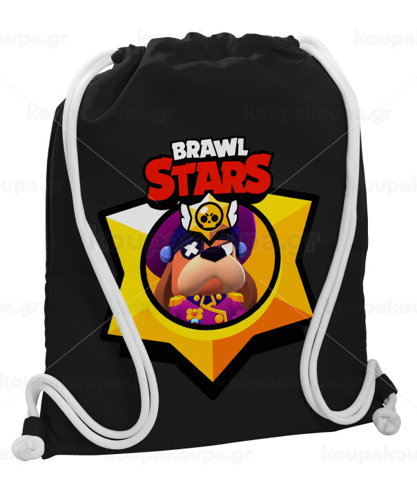 Brawl Stars Ruffs, Backpack pouch GYMBAG Black, with pocket (40x48cm) & thick white cords