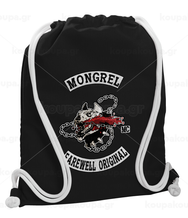 Day's Gone, mongrel farewell original, Backpack pouch GYMBAG Black, with pocket (40x48cm) & thick white cords