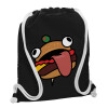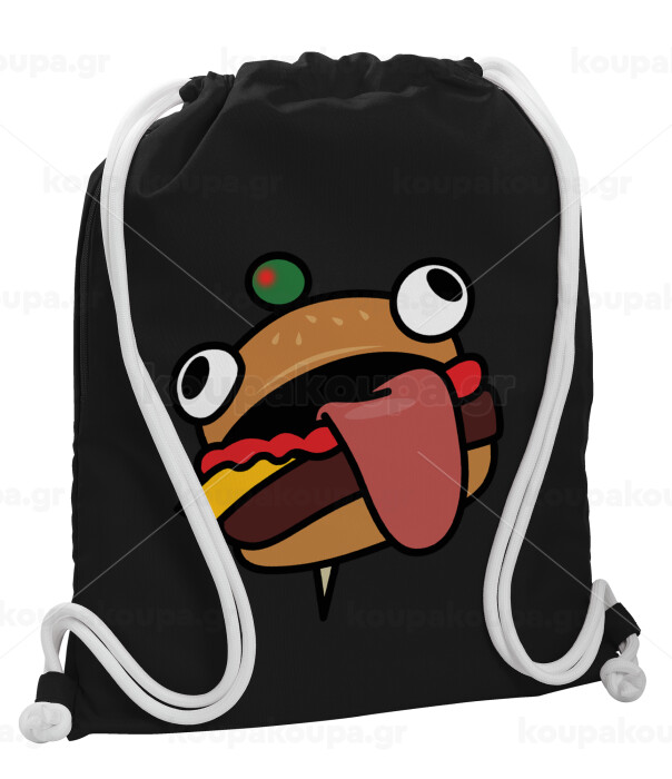 Fortnite Durr Burger, Backpack pouch GYMBAG Black, with pocket (40x48cm) & thick white cords