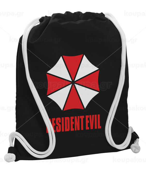 Resident Evil, Backpack pouch GYMBAG Black, with pocket (40x48cm) & thick white cords