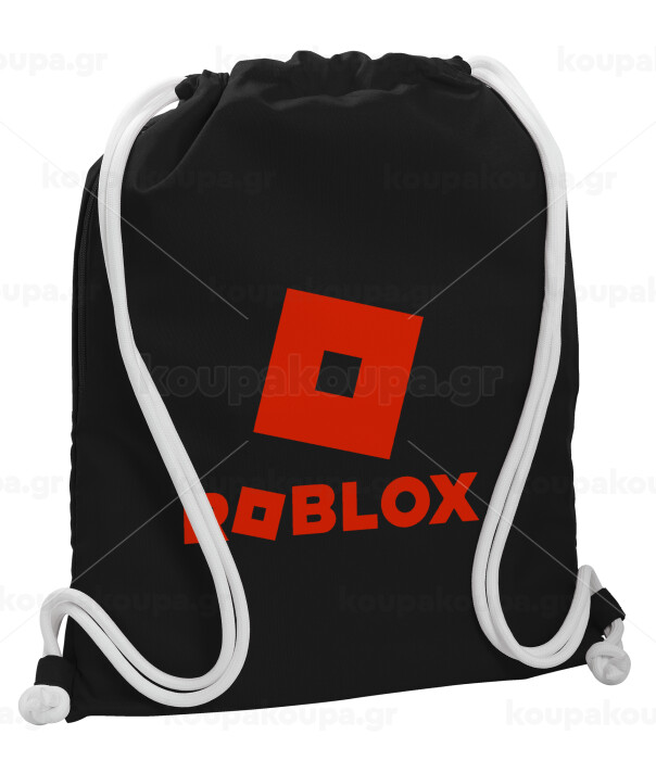 Roblox red, Backpack pouch GYMBAG Black, with pocket (40x48cm) & thick white cords