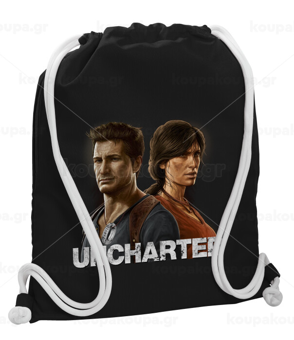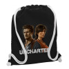 Uncharted, Backpack pouch GYMBAG Black, with pocket (40x48cm) & thick white cords