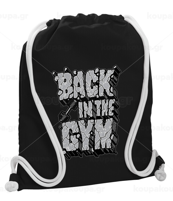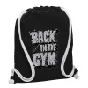 Back in the GYM, Backpack pouch GYMBAG Black, with pocket (40x48cm) & thick white cords