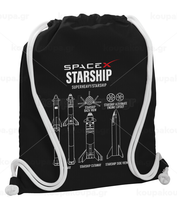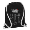 Space X, Backpack pouch GYMBAG Black, with pocket (40x48cm) & thick white cords