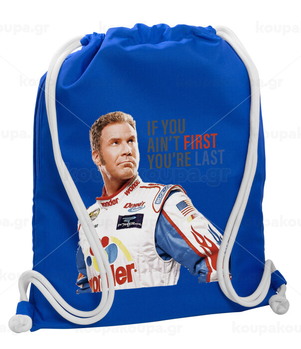If You Ain't First You're Last Ricky Bobby, Talladega Nights, Backpack pouch GYMBAG Blue, with pocket (40x48cm) & thick cords