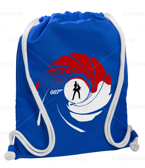 James Bond 007, Backpack pouch GYMBAG Blue, with pocket (40x48cm) & thick cords