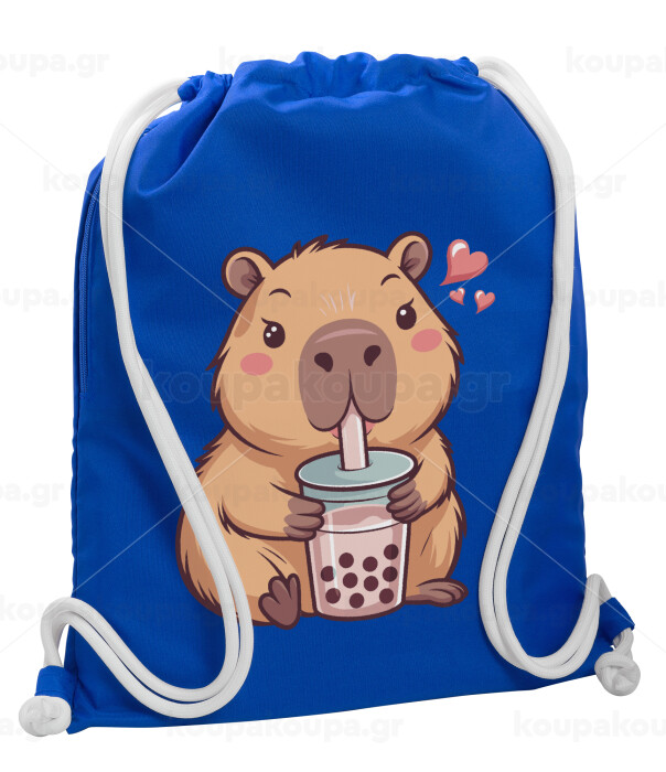 Capybara Bubble Tea, Backpack pouch GYMBAG Blue, with pocket (40x48cm) & thick cords