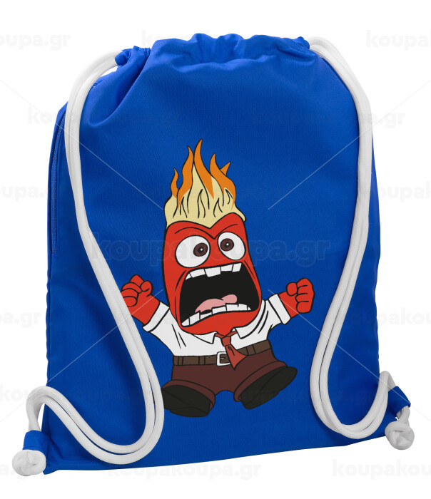 Inside Out Angry, Backpack pouch GYMBAG Blue, with pocket (40x48cm) & thick cords