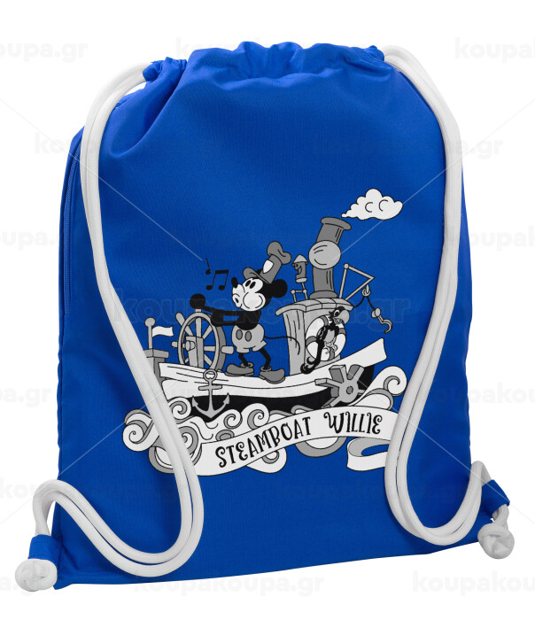 Mickey steamboat, Backpack pouch GYMBAG Blue, with pocket (40x48cm) & thick cords