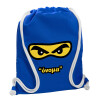 Ninja Eyes με όνομα, Backpack pouch GYMBAG Blue, with pocket (40x48cm) & thick cords