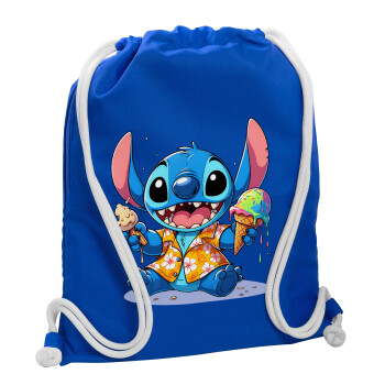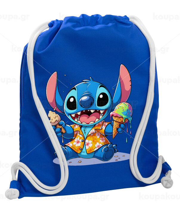 Stitch Ice cream, Backpack pouch GYMBAG Blue, with pocket (40x48cm) & thick cords